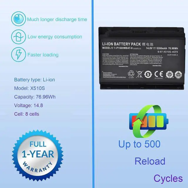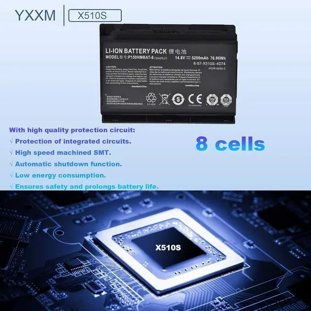 P150HMBAT-8 X510S Battery Quality Control:Up to 500 charging cycles over the battery life, state-of-the-art technology and safety precautions ensure that this battery works just as reliably as the original, CE certification, RoHs certification, EMC and EC tests passed.