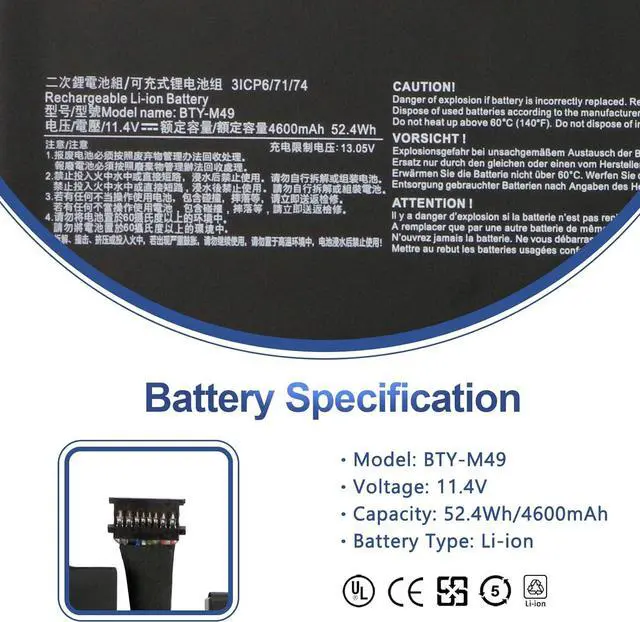 Replace Part NumberFit for BTY-M49 3ICP6/71/74 BTYM49.