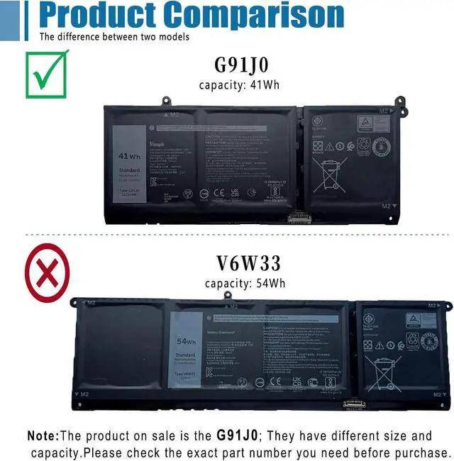 Replace Part NumberG91J0, FH3K2, 0FH3K2, TN70C, 0WV3K8, 0VKYJX, 0MVK11, 0XDY9K, PG8YJ, 0PG8YJ, JGCCT, N9XX1, 927N5, 0927N5, MGCM5, 0MGCM5. (Important Note:There are 2 battery models may fit for the laptop: G91J0 41Wh and V6W33 54Wh .Please open your laptop case to confirm your original battery shape and then choose the right one.This listing we are selling is: G91J0 41Wh)