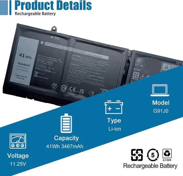 SpecificationsModel: G91J0. Type: Li-ion. Voltage: 11.25V. Capacity: 41Wh 3467mAh.Up to 1000 recharge cycles over the life of the battery.
