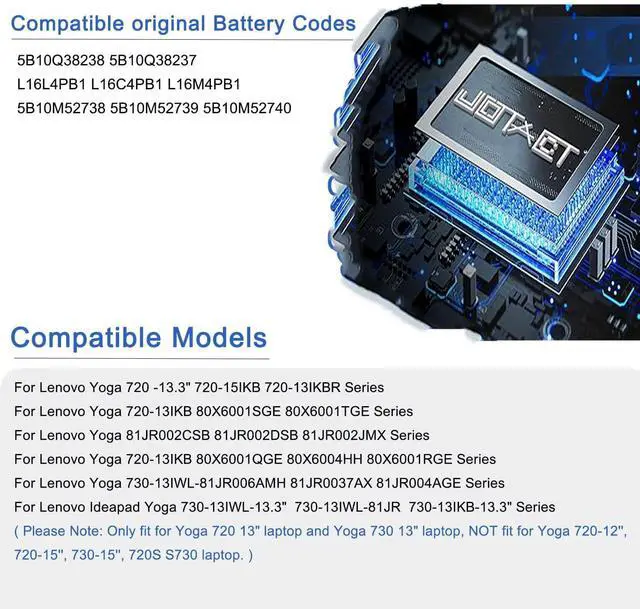 Compatible Laptop ModelsFor Lenovo Yoga 720 -13.3" 720-15IKB 720-13IKBR Series; For Lenovo Yoga 720-13IKB 80X6001QGE 80X6004HH 80X6001RGE 80X6001SGE 80X6001TGE Series; For Lenovo Ideapad Yoga 730-13IWL-13.3" 730-13IWL-81JR 730-13IKB-13.3" Series; For Yoga 730-13IWL-81JR006AMH 81JR0037AX 81JR004AGE 81JR002CSB 81JR002DSB 81JR002JMX Series ( Please Note: Only fit for Yoga 720 13" laptop and Yoga 730 13" laptop, NOT fit for Yoga 720-12'', 720-15'', 730-15'', 720S S730 laptop. )
