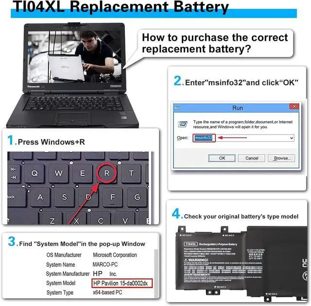 Compatible Part Number: TI04XL T1O4XL TIO4XL HSTNN-IB9T M24420-1D1 M24563-005 M24420-1C1 TI04055XL