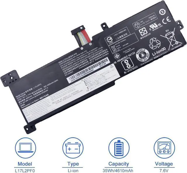 SpecificationsBattery Model :L17L2PF0;Product Type: Replacement battery; Battery Type: Li-ion; Voltage: 7.6V; Capacity: 35Wh/ 4610mAh; Battery Life: Up to 500 recharge cycles over the life of the battery