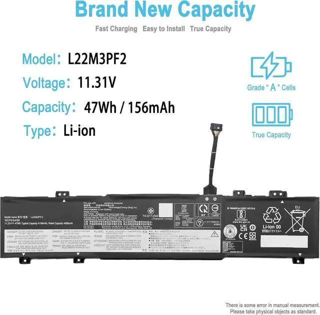 3-Cell L22M3PF2 Replacement Laptop Battery for Lenovo V14 V15 G4 AMN G5 IRL IdeaPad Slim 3 14ABR8 15IAN8 16IRU9 Slim 3i 15IRU9 Series L22C3PF2 L22D3PF2 L22B3PF2 L22M3PF2 5B11K09317