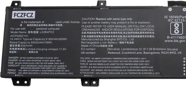 SpecificationsBattery Model:L22B4PC2 // Voltage:15.44V // Capacity:80Wh 5182mAh 4-cell // Color:Black // Condition:Brand New.