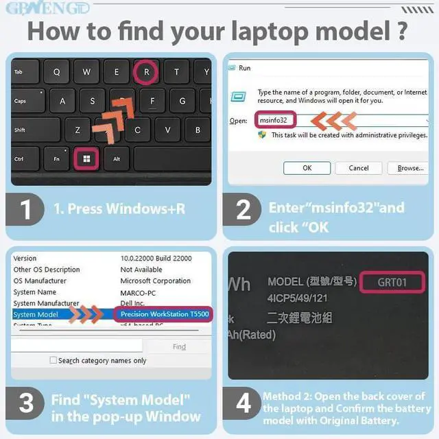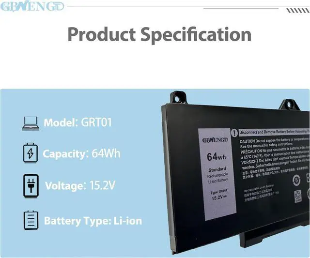 Specifications Model: GRT01 Capatity: 64Wh Voltage:15.2V Color: Black Battery type: Rechargeable Li-ion Battery Condition: 100% brand New from Manufacturer.
