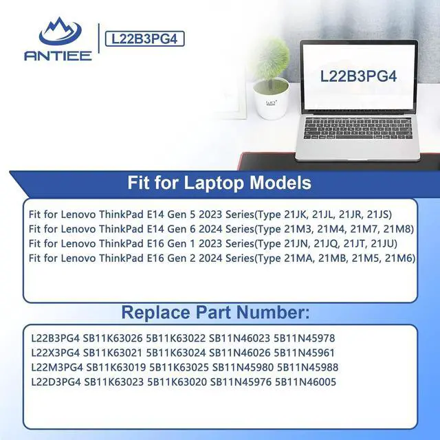 Compatible Laptop ModelsReplacement for Lenovo ThinkPad E14 Gen 5 2023 Series; for Lenovo ThinkPad E14 Gen 6 2024 Series; for Lenovo ThinkPad E16 Gen 1 2023 Series; for Lenovo ThinkPad E16 Gen 2 2024 Series; for Lenovo ThinkPad E14 Gen 5 (Type 21JK, 21JL, 21JR, 21JS) Series; for Lenovo ThinkPad E14 Gen 6 (Type 21M3, 21M4, 21M7, 21M8) Series; for Lenovo ThinkPad E16 Gen 1 (Type 21JN, 21JT, 21JQ, 21JU) Series; for Lenovo ThinkPad E16 Gen 2 (Type 21MA, 21MB, 21M5, 21M6) Series