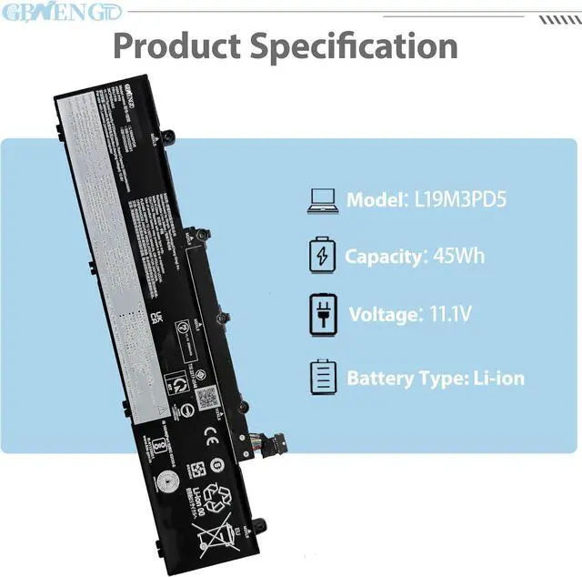 Specifications Model: L19M3PD5 Capatity: 45Wh Voltage:11.1V Color: Black Battery type: Rechargeable Li-ion Battery Condition: 100% brand New from Manufacturer.