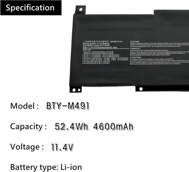 Compatible Part Number: BTY-M491(White connector) ,;Please note that there are two types of BTY-M491 batteries. They have different con-nectors. We highly suggest you open the back cover of your laptop and compare itwith your old battery before making a payment.
