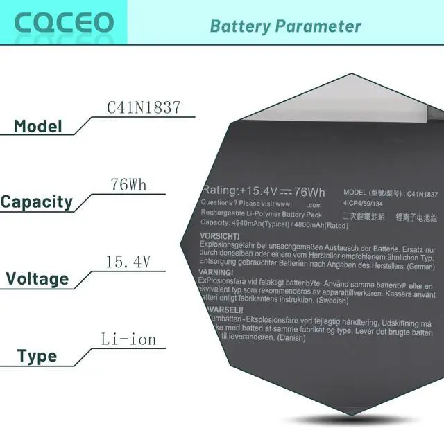 Battery type: Lithium ion ; Battery Condition: Brand New ; Voltage: 15.4V ; Capacity:76Wh 4940mAh 4-cell