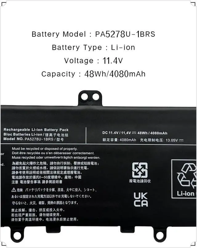Battery Type: Li-ion; Voltage: 11.4V; Capacity: 48Wh/4080mAh