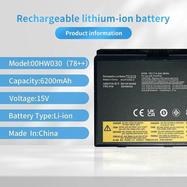 Compatible with: Compatible with battery P/N: for Lenovo ThinkPad P70 Mobile Workstation with 20ER 20ES) and ThinkPad P71 Mobile Workstation with 20HK).