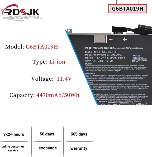 Battery type: Li-ion; Voltage: 11.4V; Capacity: 4470mAh/50Wh; Cells: 3-Cell