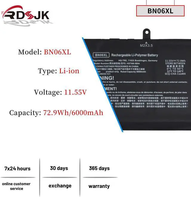 Replace Part Numbers: BN06XL BNO6XL BN06072XL HSTNN-IB9A L68235-1C1 L68299-005 BN06 BNO6