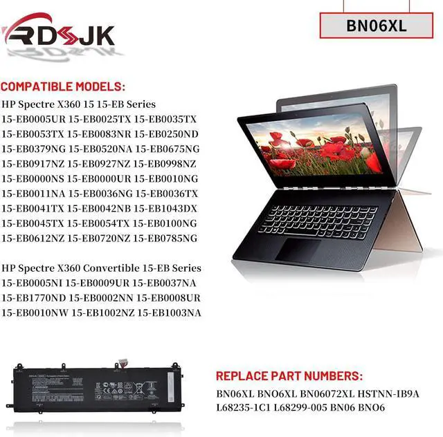 Compatible Models: HP Spectre X360 15 15-EB 15-EB0005UR 15-EB0025TX 15-EB0035TX 15-EB0053TX 15-EB0083NR 15-EB0250ND 15-EB0379NG 15-EB0520NA 15-EB0675NG 15-EB0917NZ 15-EB0927NZ 15-EB0998NZ Series; HP Spectre X360 Convertible 15-EB0005NI 15-EB0009UR 15-EB0037NA 15-EB1770ND