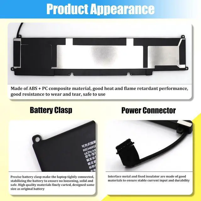 • BATTERY SPECIFICATION: Model Name: RC30-0482; Voltage: 15.4V; Capacity: 68.1Wh 4422mAh; Battery Type: Li-ion; Condition: 100% brand new from manufacturer; Package include: 1*battery + battery installation screwdrivers + 1*instruction for laptop battery