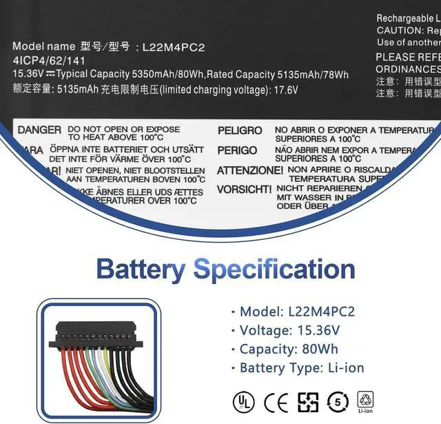 SpecificationVoltage: 15.44V. Capacity: 80Wh 5182mAh. Battery Type: Li-Polymer. Condition: Brand new, from durable materials, top circuit boards and smart chip