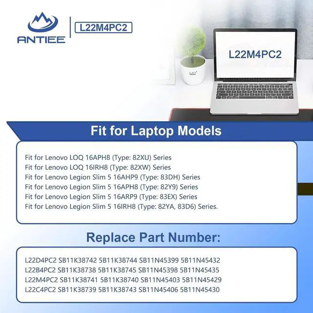 Compatible Laptop ModelsFit for Lenovo LOQ 16APH8 (Type: 82XU) Series; for Lenovo LOQ 16IRH8 (Type: 82XW) Series; for Lenovo Legion Slim 5-16APH8 (Type: 82Y9) Series; for Lenovo Legion Slim 5-16IRH8 (Type: 82YA 83D6) Series; for Lenovo Legion Slim 5-16AHP9 (Type: 83DH) Series; for Lenovo Legion Slim 5-16ARP9 (Type: 83EX) Series.