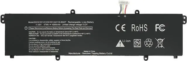 GingePro B31N1911 AS Laptop Battery, high-performance laptop battery crafted with premium lithium-ion cells, 11.55 V voltage, 47 Wh capacity (4000 mAh). Compatible Part Number: B31N1911 C31N1911 A0118-00427 0B200-03580000 0B200-03750000 B0B200-03580300