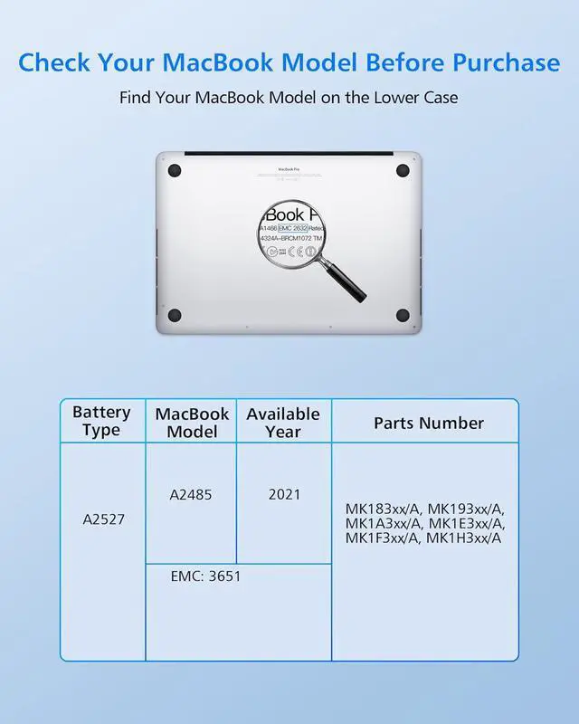 Perfect Compatibility: Specifically designed for MacBook Pro 16-inch A2485 (2021) and compatible with battery model A2527. This battery fits perfectly and works seamlessly with your original charger and hardware