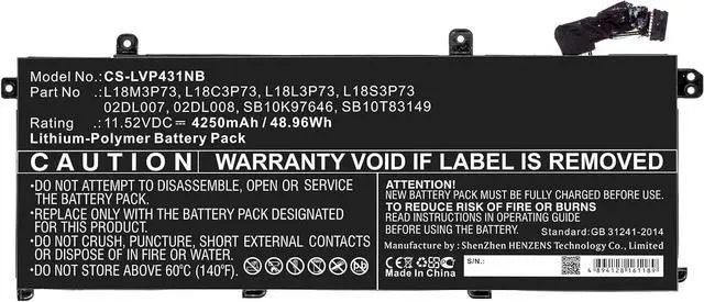 Compatible modelsThe Battery Compatible with Lenov'o 02DL007,02DL008,3ICP5/80/73,5B10W13905,5B10W13906,L18C3P73,L18L3P73,L18M3P73,L18S3P73,SB10K97645,SB10K97646,SB10T83148,SB10T83149.