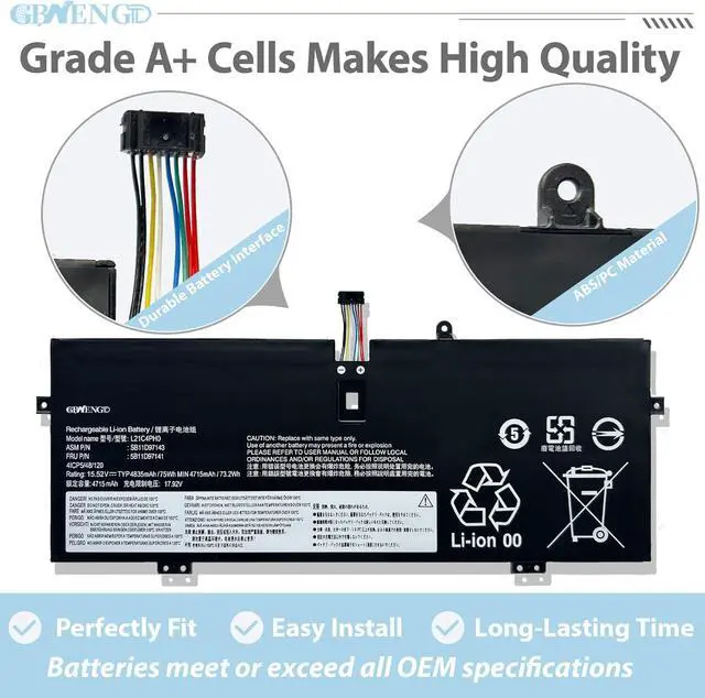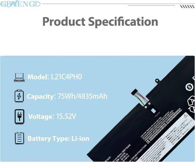 Specifications Model: L21C4PH0 Capatity: 75Wh/4835mAh Voltage:15.52V Color: Black Battery type: Rechargeable Li-ion Battery Condition: 100% brand New from Manufacturer.