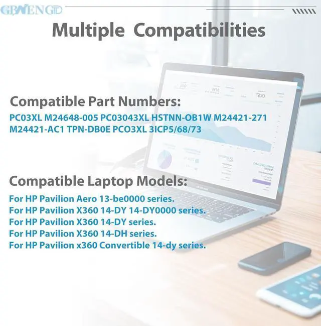 Compatible Model PC03XL / M24648-005 TPN-DB0E / PCO3XL / PC03043XL M24421-271 / M24421-AC1 HSTNN-OB1W / 3ICP5/68/73 PC03 / PCO3