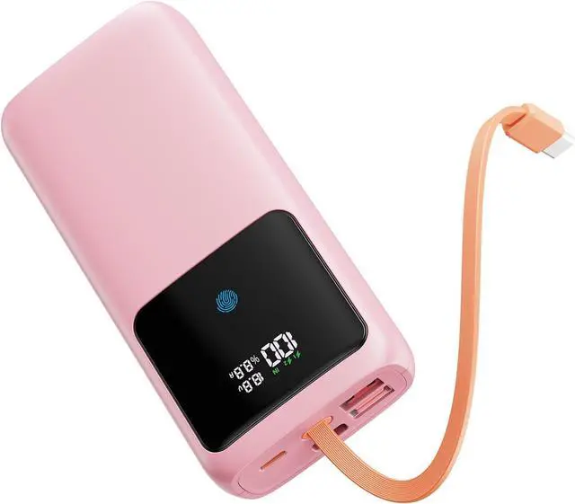 - + This portable charger power bank features an integrated 22cm USB-C cable + 1 USB-C (IN/OUT) + 2 USB-A ports, allowing the battery pack to support 4-device simultaneous charging. No extra cables needed; the 65W bidirectional USB-C port of this charging bank works seamlessly with new devices. Tangle-free cable (10k insertion tests) keeps bags neatperfect for families/groups