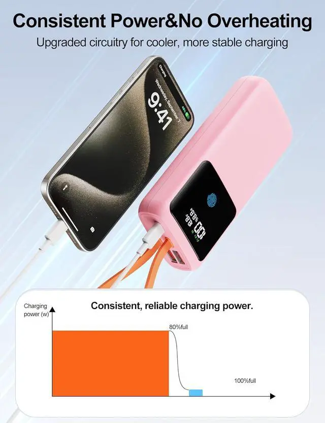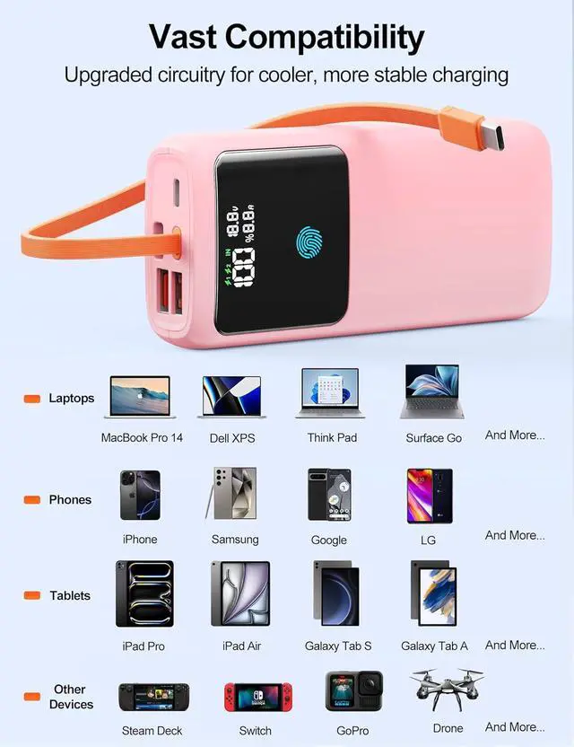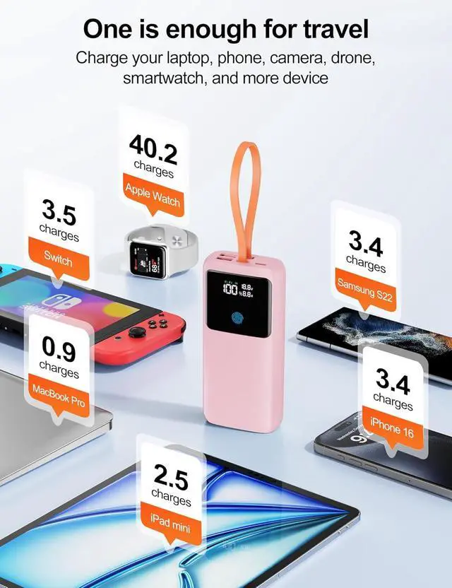 + This portable power bank's LED display shows remaining battery (1% precision), charging power/statusreplacing vague indicator lights, and this battery bank avoids overcharging, lets you check fast charging instantly, and its soft brightness auto-offs after 30s. Works with 99% digital devices (iPhones, Samsung, MacBooks, etc.)one power bank for family, saving money and luggage spacegreat value