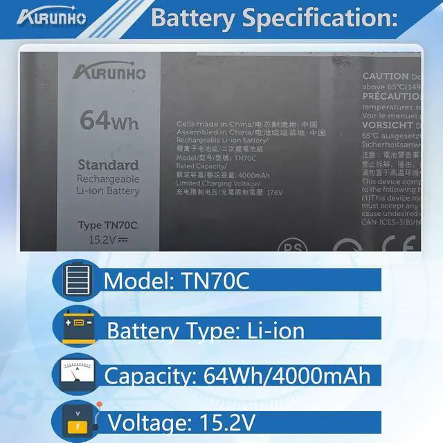 Specifications Model: TN70C . Voltage: 15.2V . Capacity: 64Wh/4000. Color: Black . 100% brand New from Manufacturer.