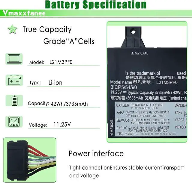 Specifications Model: L21M3PF0 . Voltage: 11.25V. Capacity: 42Wh/3735mAh . Condition: 100% brand New .
