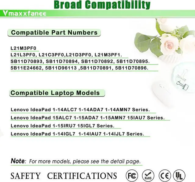 Compatible laptop Models for Lenovo IdeaPad 1-14ALC7 1-14ADA7 1-14AMN7 Series, Lenovo IdeaPad 15ALC7 1-15ADA7 1-15AMN7 15IAU7 Series, Lenovo IdeaPad 1-15IRU7 15IGL7 Series,Lenovo IdeaPad 1-14IGL7 1-14IAU7 1-14IJL7 Series.
