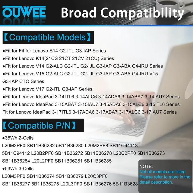 Fully compatible and high stabilityFit for Fit for Lenovo IdeaPad 3-15ALC6 82KU Series; Fit for Lenovo V17 G2-ITL 82NX Series;Fit for Lenovo IdeaPad 3-14ITL6 82H7 Series: IdeaPad 3 14ITL6 82H700BECK, IdeaPad 3 14ITL6 82H700UQMJ;Fit for Lenovo IdeaPad 3-15ITL6 82H8 Series: IdeaPad 3 15ITL6 82H80042VN, IdeaPad 3 15ITL6 82H800J8TA, IdeaPad 3-15ITL6 82H80083GE;Fit for Lenovo IdeaPad 3-17ITL6 82H9 Series: IdeaPad 3 17ITL6 82H9007EMH, IdeaPad 3 17ITL6 82H900RQIX, IdeaPad 3 17ITL6 82H900UBCY, IdeaPad 3 17ALC6 82KV003JMZ