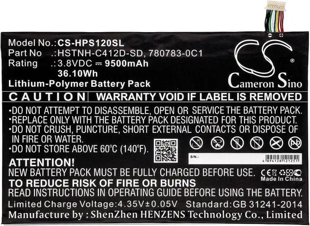 Volts: 3.8V, | Capacity: 9500mAh / 36.10Wh;