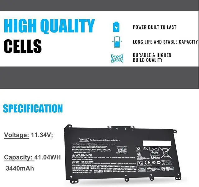 Compatible Part Numbers:- HP HSTNN-IB90 HSTNN-IB9O HSTNN-LB8U HSTNN-OB2A HW03XL HWO3XL L96887-1D1 L96887-421 L96887-AC1 L97300-005