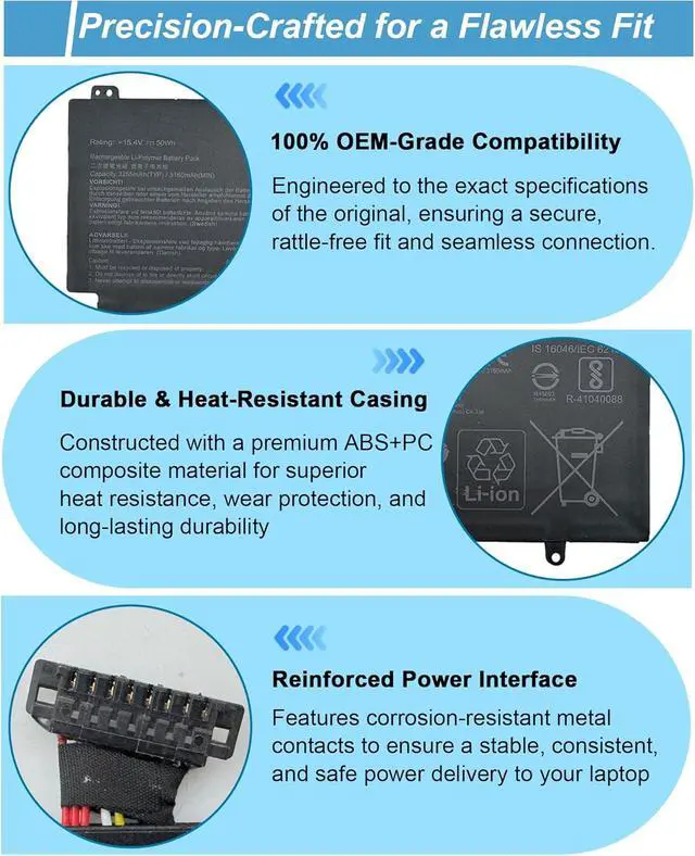 Specifications: Model Name: C41N1805 standard Rechargeable Li-ion Battery; Battery Type: Lithium_ion; Voltage: 15.4 V; Capacity: 50 Wh 3160 mAh. Color: Black. Packages includes:1x C41N1805 Laptop Battery, 2 x Screwdrivers for easy installation, 1x Instruction