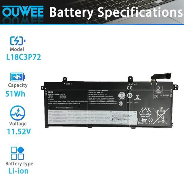 Battery typeLi-ion. Voltage: 11.52V. Capacity: 51Wh 4380mAh .