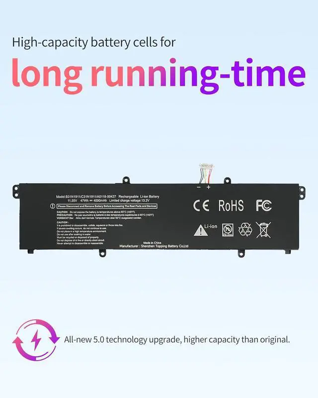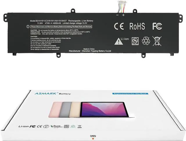 Replacement Battery Model: B31N1911/C31N1911/A0118-00427; Full Charge Capacity: 47 Wh 4000 mAh; Voltage: 11.55 V; Compatible with ASUS VivoBook Flip 14 TM420 TM420IA TM420UA TP420 TP420IA TP420UA TP470 TP470EA TP470EZ X421DA X421EA X421EP X421EQ X421FA X421FF X421FL X421IA X421JA X421JP X421JQ X421UA X413 X413EA X413FA X413FF X413FP X413JA; VivoBook S14 S433 S433EA S433EQ S433FA S433IA S433JA S413 S413DA S413EA S413FA S413FQ S413IA S413JA M433 M433DA M433IA K413 K413EA K413EQ K413FA K413FP K413FQ K413JA K413JP K413JQ K433 K433FA, VivoBook 14 M413 M413DA M413IA M413UA F413 F413EA F413EP F413FA F413JA V4050 V4050FA V4050FF V433FA D413 D413DA D413IA R413 R413DA A413 A413FA A413EP notebook