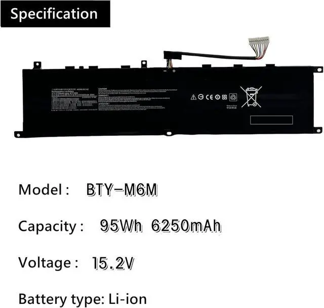 Model: BTY-M6M ; Voltage: 15.2V ; Capacity: 95Wh / 6250mAh ; Battery type: Li-ion