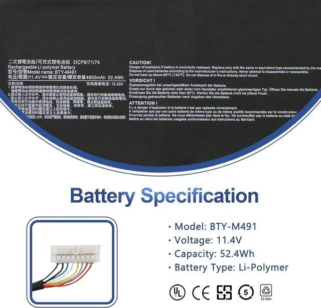 Replace Part NumberFit for BTY-M491 925QA048H 3ICP6/71/74 White connector