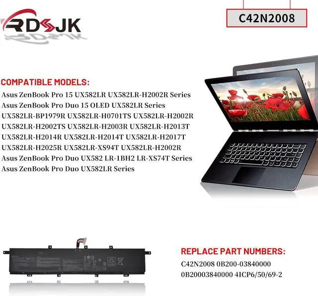 Compatible Models: Fit for Asus ZenBook Pro 15 UX582LR UX582LR-H2002R Series, Fit for Asus ZenBook Pro Duo 15 OLED UX582LR Series, Fit for Asus ZenBook Pro Duo 15 OLED UX582LR-BP1979R UX582LR-H0701TS UX582LR-H2002R UX582LR-H2002TS UX582LR-H2003R UX582LR-H2013T UX582LR-H2014R UX582LR-H2014T UX582LR-H2017T UX582LR-H2025R UX582LR-XS94T Series, Fit for Asus ZenBook Pro Duo UX582 LR-1BH2 LR-XS74T Series, Fit for Asus ZenBook Pro Duo UX582LR Series