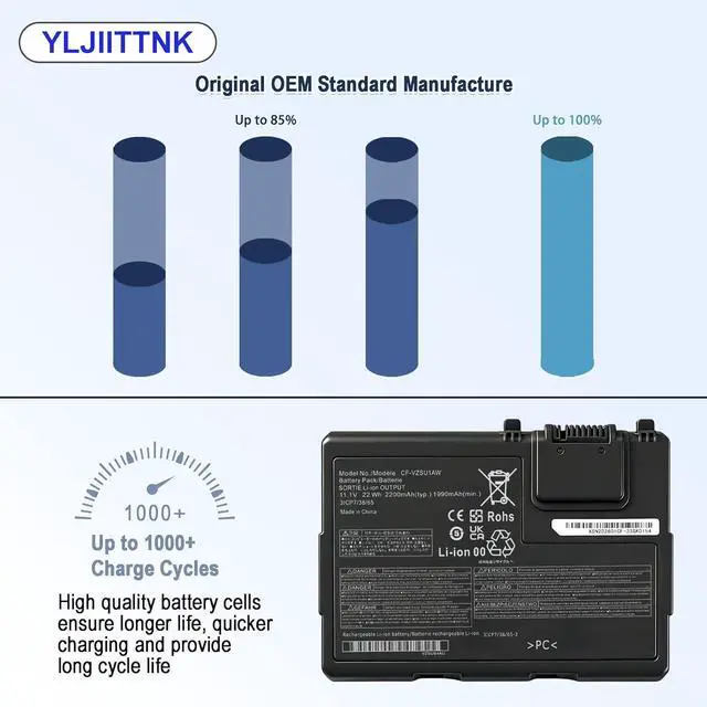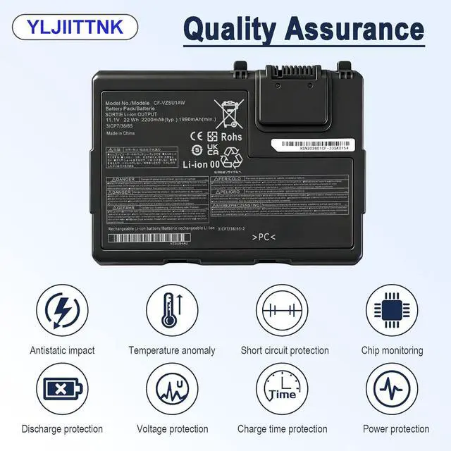 Specification of the BatteryBattery Model:CF-VZSU1AW/CF-33,Capacity: 2200mAh/22Wh, Voltage: 11.1V,Battery Type: Li-ion,100% brand new from manufacture