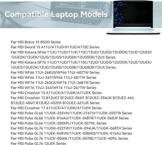 Replacement For Laptop: Compatible with MSI Bravo 15 B5DD Series,MSI Sword 15 A11U A11UD A11UE A11SC Series,MSI Katana GF66 11UC 11UD 11UE 11SC 12UD 12UE 12UG 12UGS 12UX Series,MSI Katana GF76 11UC 11UD 11UE 11SC 12UD 12UE 12UG 12UGS 12UX Series,MSI WF66 11UI 11UJ Series,MSI WF76 11UI 11UJ Series,MSI Crosshair 15 A11UCK A11UDK A11UEK B12UEZ Series,MSI Crosshair 17 A11UCK A11UDK A11UEK Series,MSI Pulse GL66 11UDK 11UEK 11UCK Series,MSI Pulse GL76 11UDK 11UEK 11UCK 12UEK Series Notebook Battery