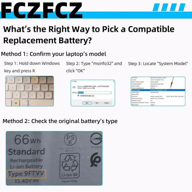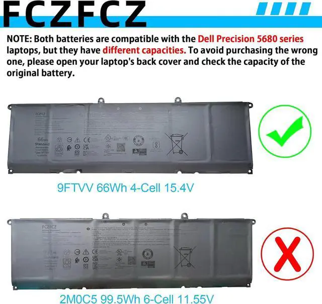 Compatible with Machine Modelsfor Dell Precision 5680 Series. (NOTE: This laptop supports two battery capacities (66Wh and 99.5Wh). To avoid purchasing the wrong one, please open your laptop's back cover and check the capacity of the original battery.)