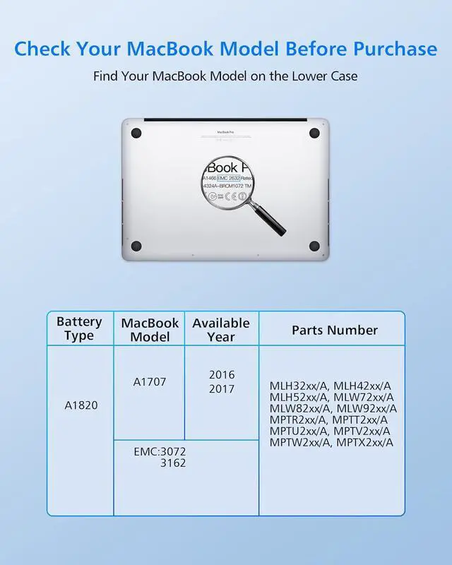 Perfect Compatibility: Specifically designed for MacBook Pro 15-inch A1707 (2016, 2017) and compatible with battery model A1820. This battery fits perfectly and works seamlessly with your original charger and hardware