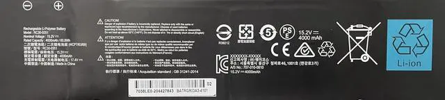 Battery Type: Li-ion, Capacity: 15.2V; Voltage: 4000mAh 60.8Wh
