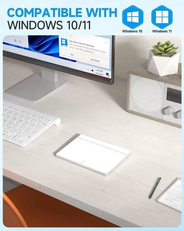 Homiguar Wireless Bluetooth Trackpad for Windows 10/11, Portable Touchpad Mouse Supports 3 Connection Modes, High-Precision with Multi-Gesture for PC Laptop Computer (White)