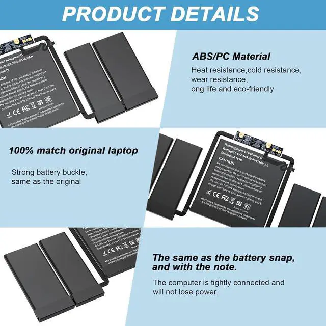 Safe & Reliable BatteryAll laptop batteries have passed CE, FCC and RoHS certification. Each battery has passed strict quality inspection procedures before shipping to ensure safety during use. Built-in circuit protection ensures both safety and stability,The battery is durable and has overcurrent protection, anti-overcharge, anti-overdischarge and temperature control functions.