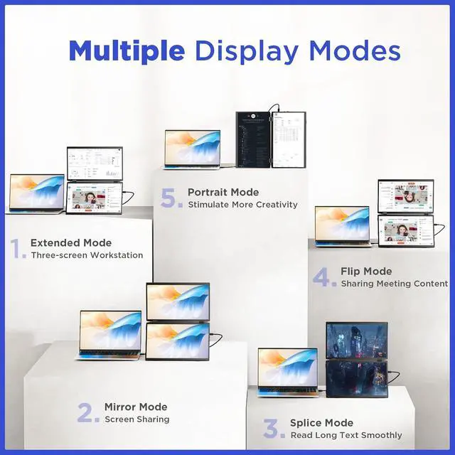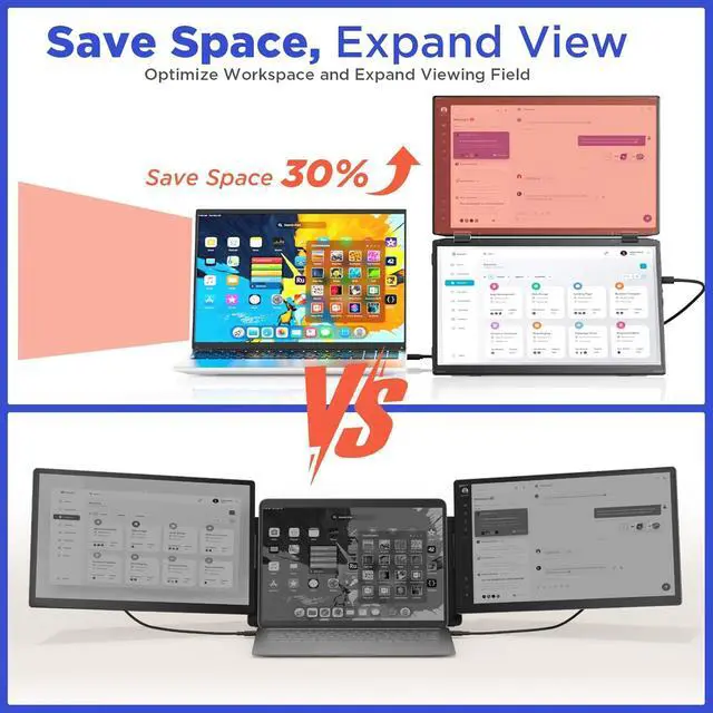 One-touch Large Screen&Space Saving: With just a press of the key, the laptop monitor extender switches to the large-screen mode, expanding your work area to 21.5'' and providing you with a clear and expansive view for increased work efficiency. The stacked screen design saves up to 30% of your desktop space