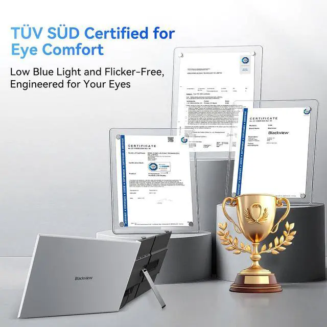 Ü Ü , : The Blackview SCM6 laptop monitor extender holds official certification from Germany's TÜV SÜD. Its hardware-level blue light filtering technology effectively reduces harmful short-wave blue light radiation, boosting productivity while safeguarding your eyes, whether working, watching, or gaming for hours, it helps minimize dryness, discomfort, and visual fatigue.